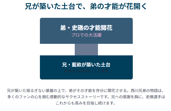 西川史礁選手の活躍の陰には、兄・藍畝さんの偉大な功績がありました。