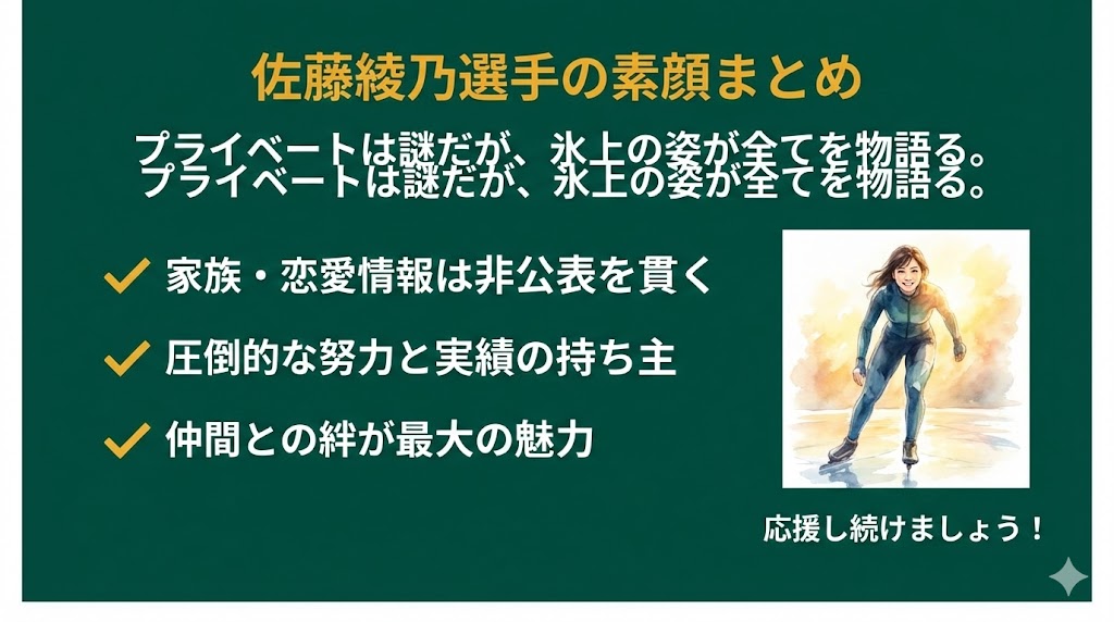 この記事では、佐藤綾乃選手の気になる家族構成や、彼氏・結婚といった恋愛事情について、現在公表されている事実をもとに紐解いていきます。
