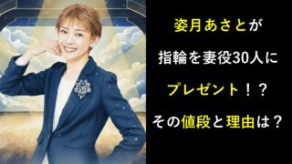 元宝塚歌劇団宙組初代トップスター・姿月あさとさんの「妻役30人に指輪プレゼントの大判振る舞い」というエピソードが紹介されることが話題!値段や理由を知りたい人向けの記事です。