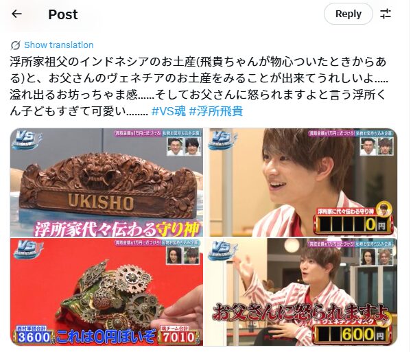 - 母親:嵐のファンであり、浮所さんのジャニーズ入所を後押しした方