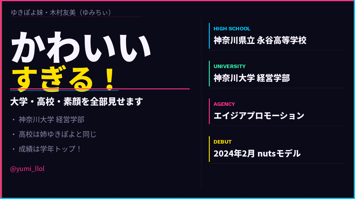 木村友美(ゆみちぃ)とは?ゆきぽよの妹・基本プロフィール